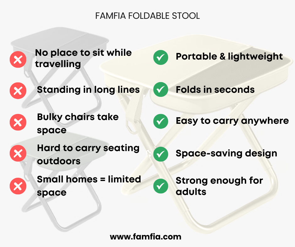 That’s exactly why we created the FAMFIA Foldable Stool — a simple, portable seating solution for real everyday life.