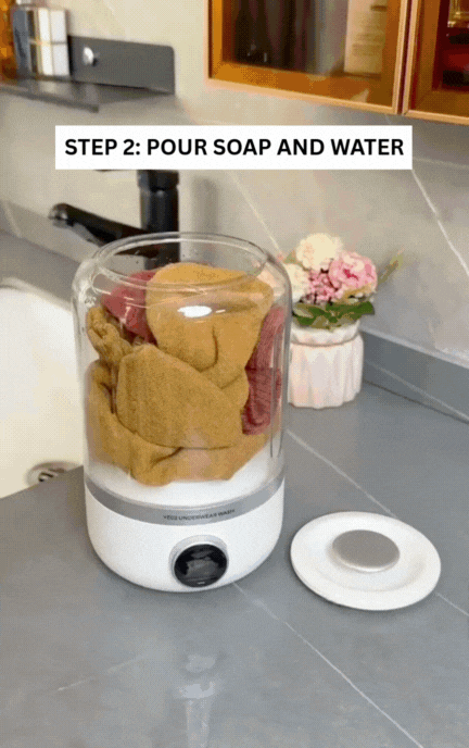 Hate handwashing underwear and socks?It’s messy, tiring, and never feels fully clean.Let this mini laundry machine do it for you — effortlessly.
